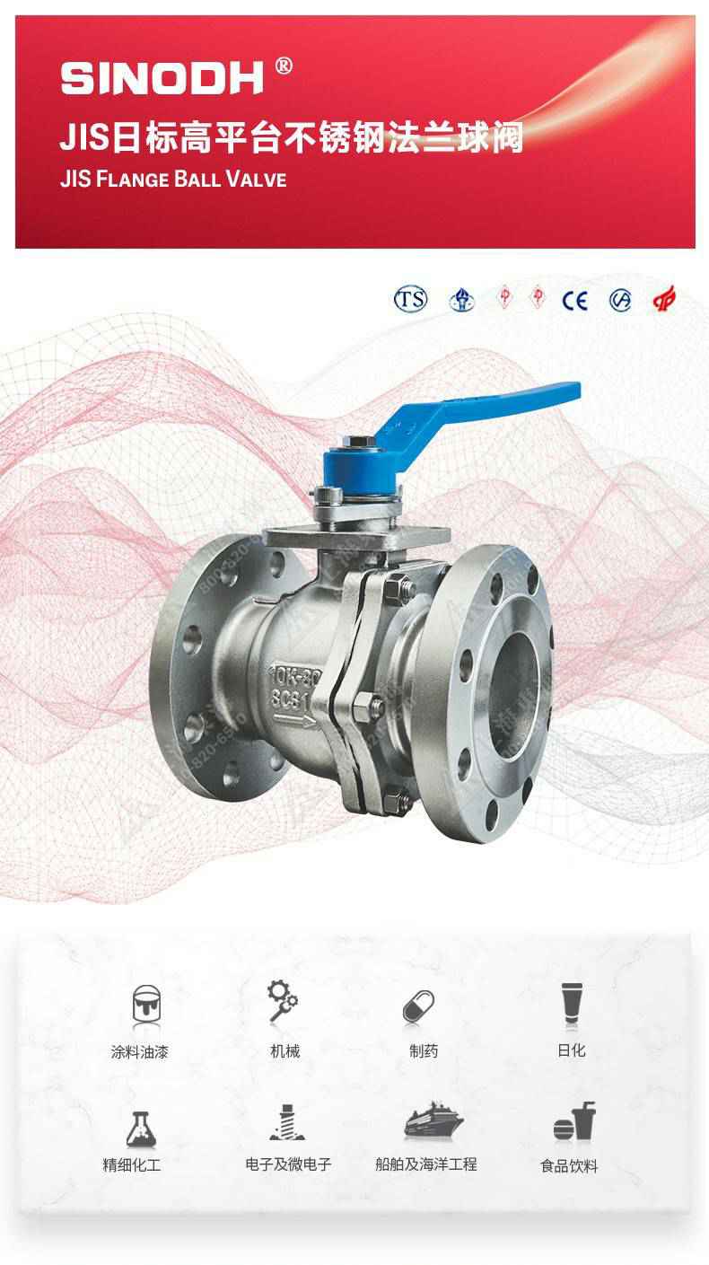 JIS日标高平台不锈钢法兰球阀,为爱游戏ayx官网平台-爱游戏(中国)自主研发生产本产品设计制造标准符合J1 SB2071标准,该产品的球体(密封件)是浮动的,在介质压力作用下,球体能产生-定的位移并紧压在出口端的密封面上,保证出口端密封。适用于水、溶剂、酸和天然气等一般工业介质,也适用于工况恶劣的介质,如氧气、过氧化氢、乙烯等介质。