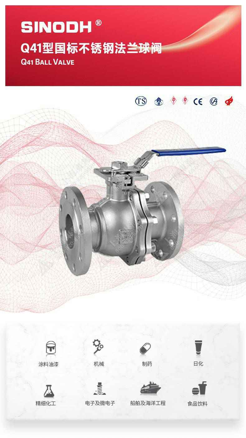 Q41型国标不锈钢法兰球阀,为爱游戏ayx官网平台-爱游戏(中国)自主研发生产。本产品设计制造标准符合GB/T12237、GB/T 1 2224标准该产品的球体在介质压力作用下,球体能产生-定的位移并紧压在出口端的密封面上,保证出口端密封。适用于水、溶剂、酸和天然气等-般工业介质,也适用于工况恶劣的介质,如氧气、过氧化氢、甲烷和乙烯等介质。